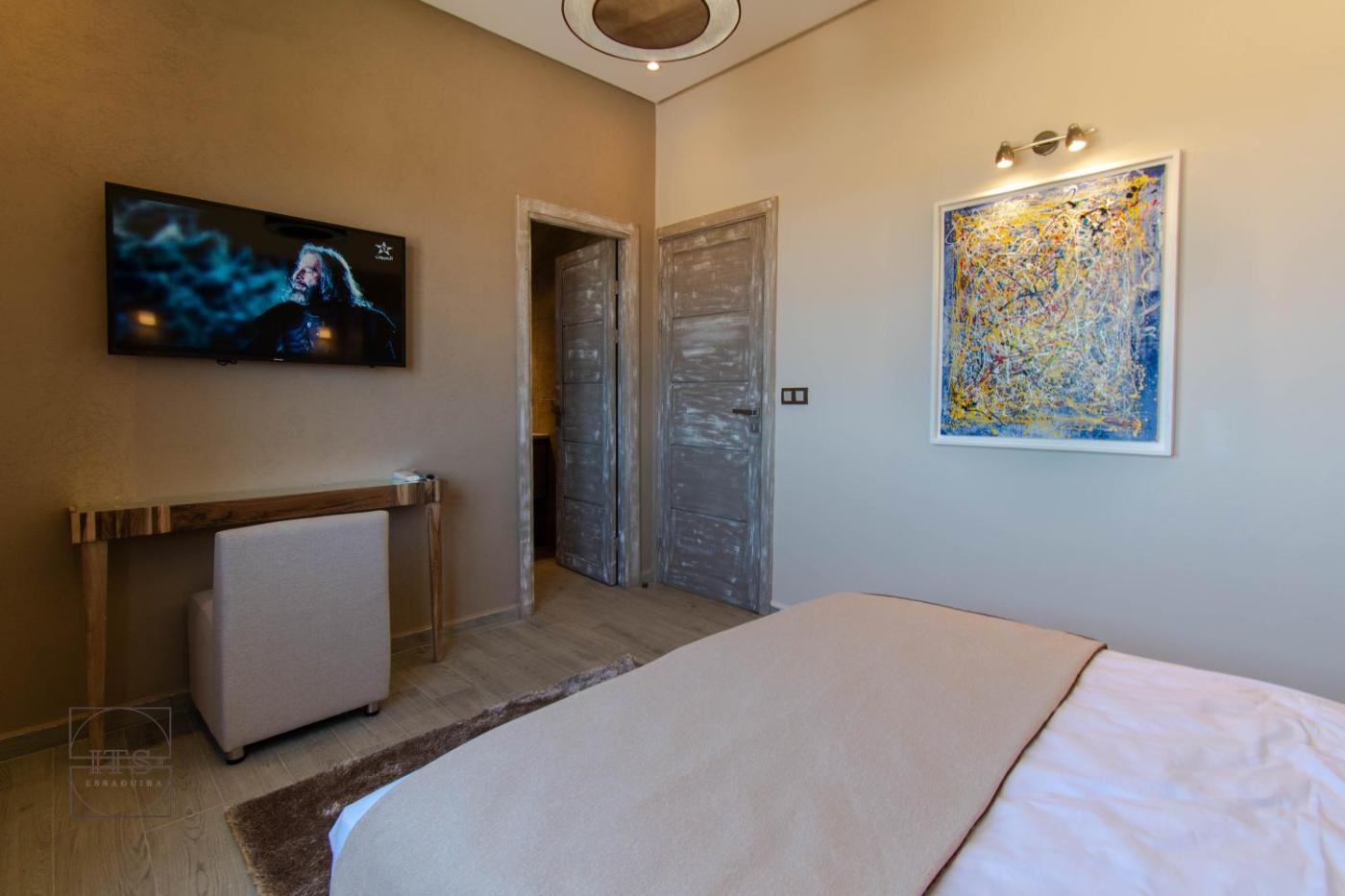 Featuring air-conditioned accommodation with a private pool, garden view and a patio, Villa KAWACH is located in Essaouira. This property offers access to a balcony, free private parking and free WiFi. The accommodation provides airport transfers, while a bicycle rental service is also available.