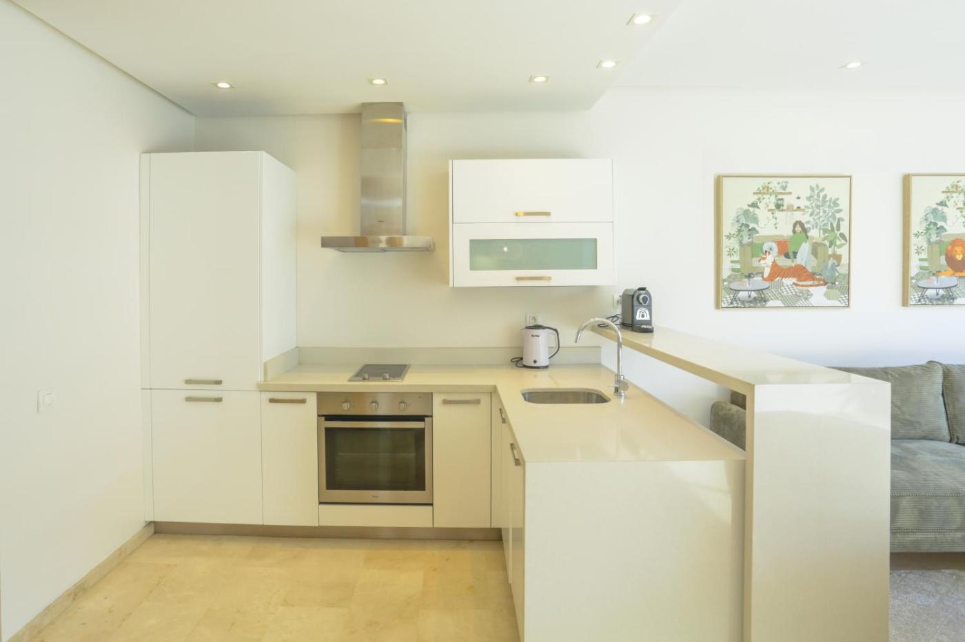 One-Bedroom Apartment. The air-conditioned apartment has 1 bedroom and 1 bathroom with a shower and a hairdryer. In the well-fitted kitchen, guests will find a stovetop, a refrigerator, kitchenware and an oven. The apartment features tiled floors, a seating area with a flat-screen TV with streaming services, a washing machine, a tea and coffee maker, as well as a dining area. The unit has 1 bed.