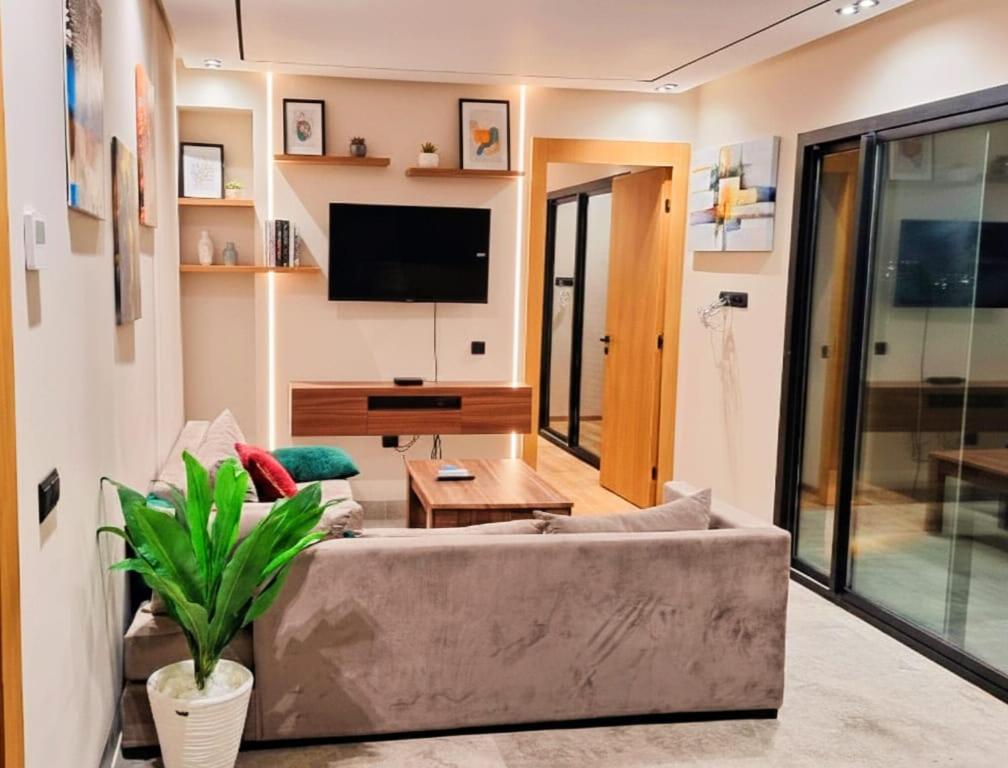 Séjour élégant avec terrasse et vue sur la ville is located in the Hay Hassani district of Casablanca, 5 km from Anfa Place Living Resort, 6.3 km from Morocco Mall and 7.8 km from Hassan II Mosq. This property offers access to a balcony, free private parking and free WiFi. Casa Port Railway Terminal is 5.6 km from the apartment and Central Market of Casablanca is 5.7 km away.