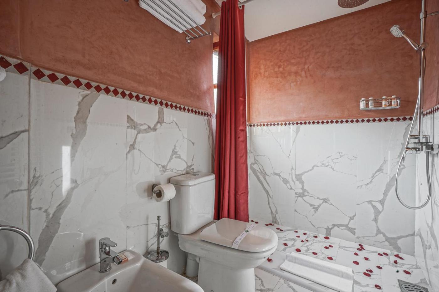 Superior Double Room. Combining a modern and Moroccan style,rooms are air-conditioned and feature a flat-screen TV. They also include an en suite bathroom with free toiletries. Extras in the superior rooms include a seating area. ;