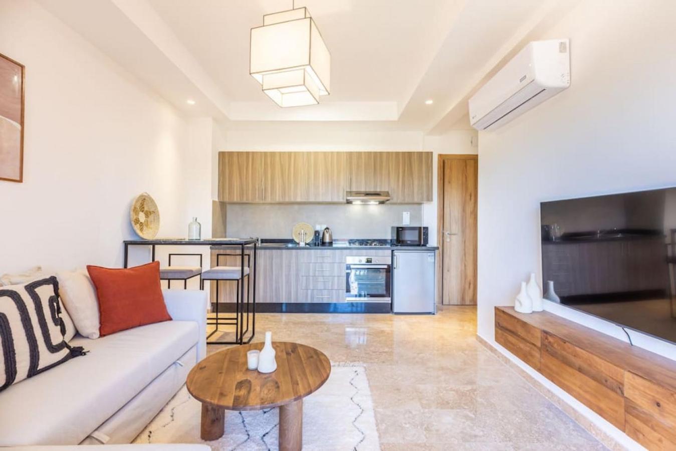 The 1-bedroom apartment is equipped with a living room with a TV, a fully equipped kitchen with a fridge and kitchenware, and 1 bathroom with a hair dryer.