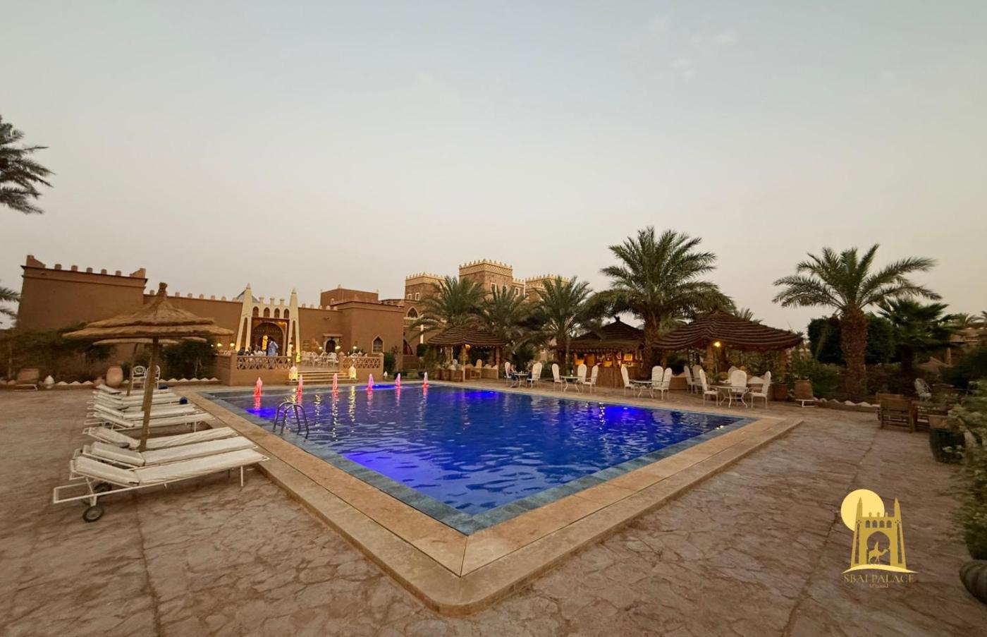 Sbai Palace features a garden, terrace, a restaurant and bar in Mhamid. Boasting room service, this property also provides guests with a childrens playground. The hotel has an outdoor swimming pool, hot tub, nightclub and a shared lounge.