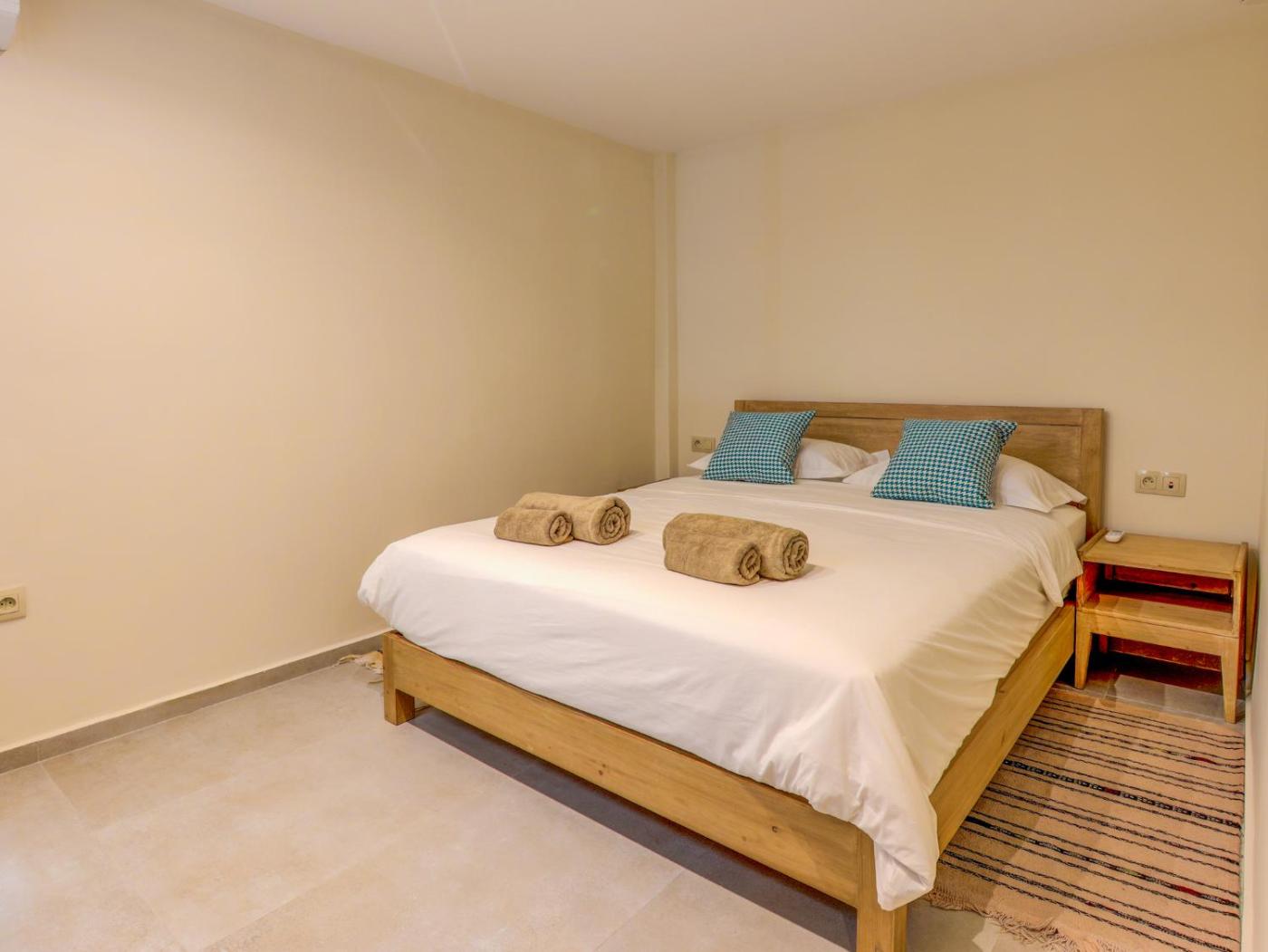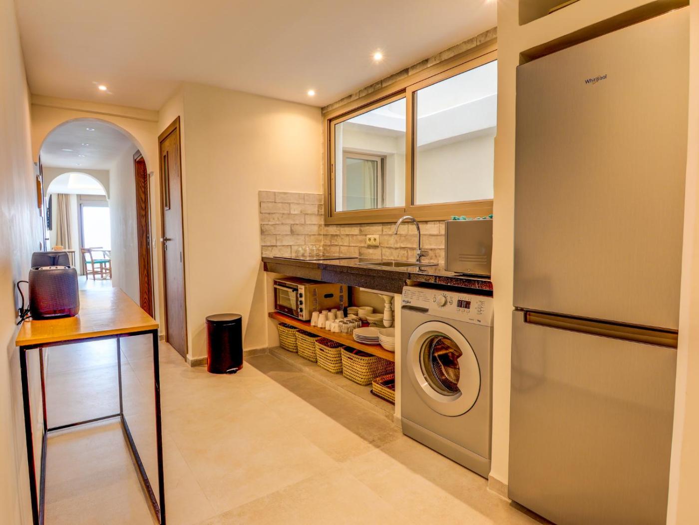 Two-Bedroom Apartment with Sea View. Boasting a private entrance, this spacious apartment also includes 2 bedrooms, a seating area and 1 bathroom with a walk-in shower and a bath. In the fully equipped kitchen, guests will find a stovetop, a refrigerator, kitchenware and an oven. The air-conditioned apartment offers a flat-screen TV with streaming services, a washing machine, a tea and coffee maker, a dining area as well as sea views. The unit has 5 beds.